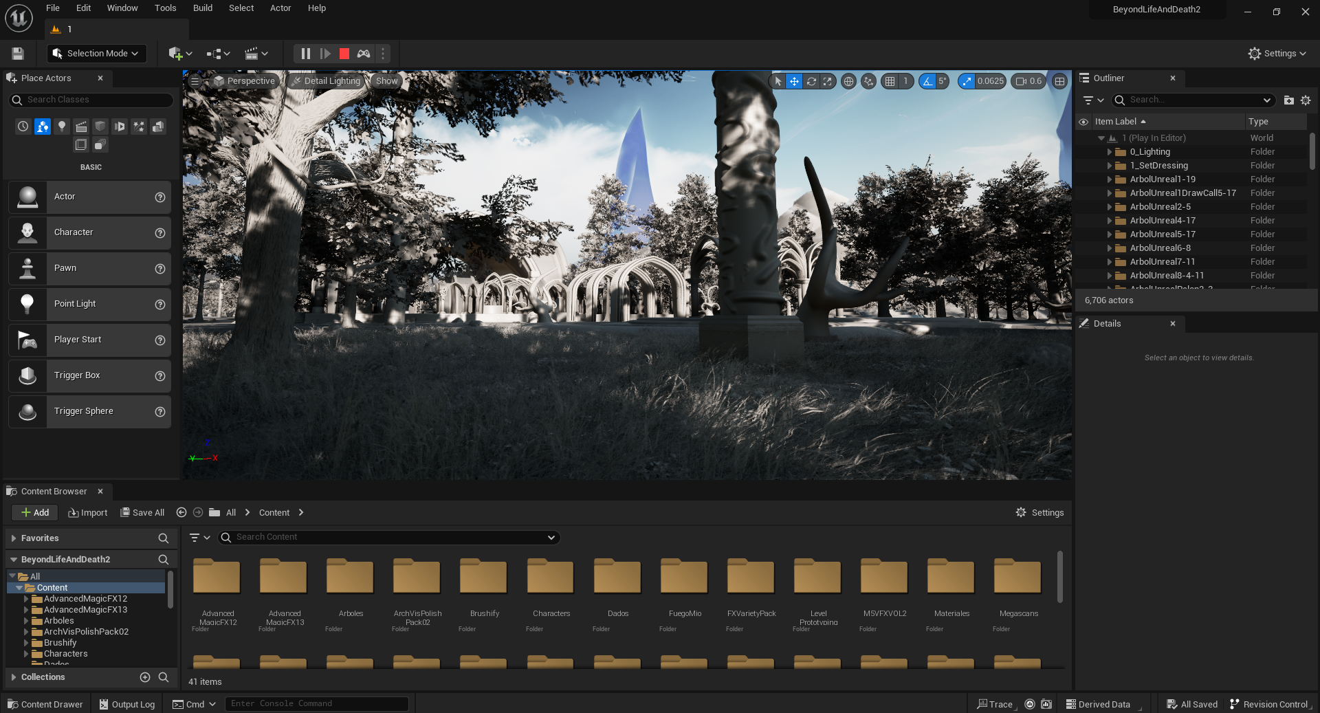 There are many visual improvements planned for the future. Adding foliage, extra areas, and luminous NPCs walking across the scene are a few of our next steps; modeling dozens of runes triggering glowing effects and more! Since most characters reside in their spiritual form, we are considering a luminous shader, bringing light to certain sections with different colors (bearing in mind Lumen)
